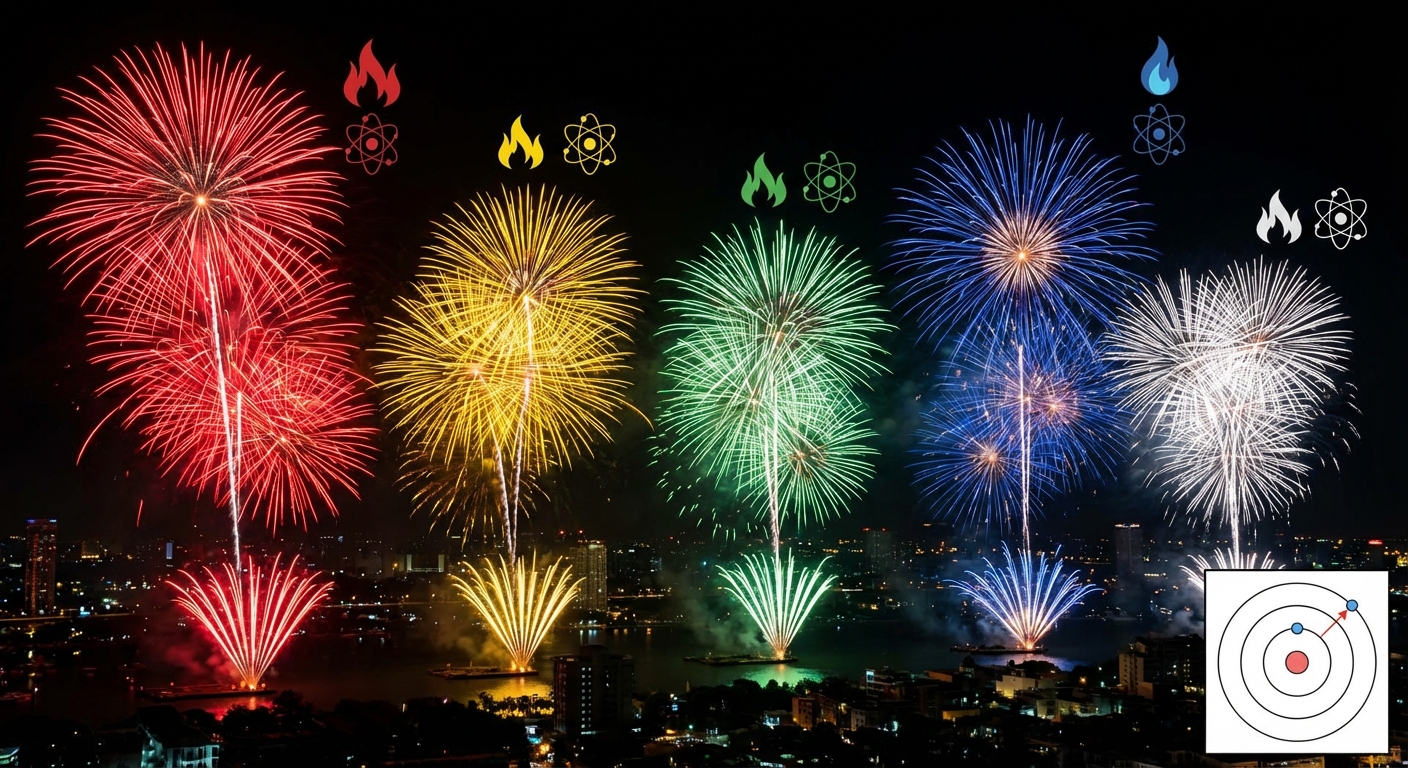 정답부터 말씀드리면 '땡!'입니다. 불꽃놀이의 색은 물감과는 전혀 상관이 없어요. 오히려 '어떤 물질을 태우는가'에 그 비밀이 숨어있답니다. 마치 요리사가 다양한 재료로 여러 가지 맛을 내는 것처럼, 불꽃 기술자들은 다양한 '금속 원소'를 사용해 밤하늘에 화려한 색을 그려내는 거죠. 지금부터 그 신비로운 과학의 세계로 함께 떠나볼까요?