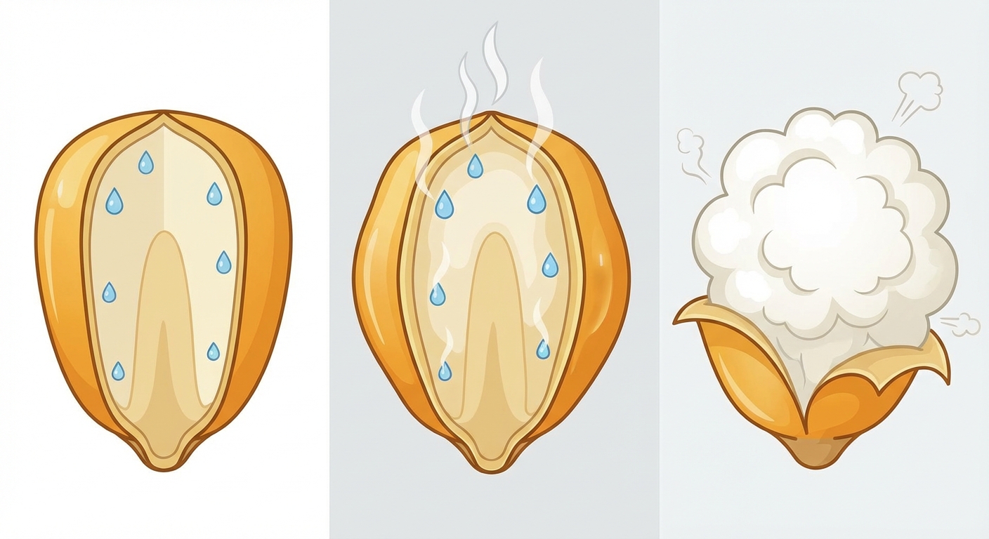 배젖 속에 갇혀 있는 이 작은 물방울들이 팝콘을 터뜨리는 결정적인 엔진 역할을 합니다.