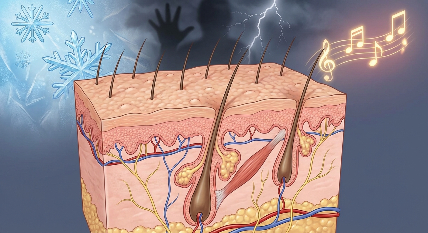 공포 영화를 볼 때 소름이 돋는 건, 우리 뇌가 영화 속 위협을 실제 상황으로 착각하고 이 오래된 방어 시스템을 작동시키기 때문이에요. 정말 신기하지 않나요?